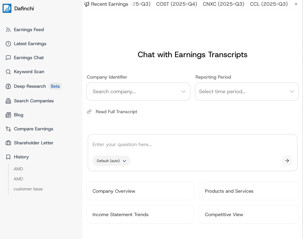 dafinchi.ai leverages the power of large language models to revolutionize how you explore financial disclosure documents. With access to data from 3000+ top US public companies, users can: